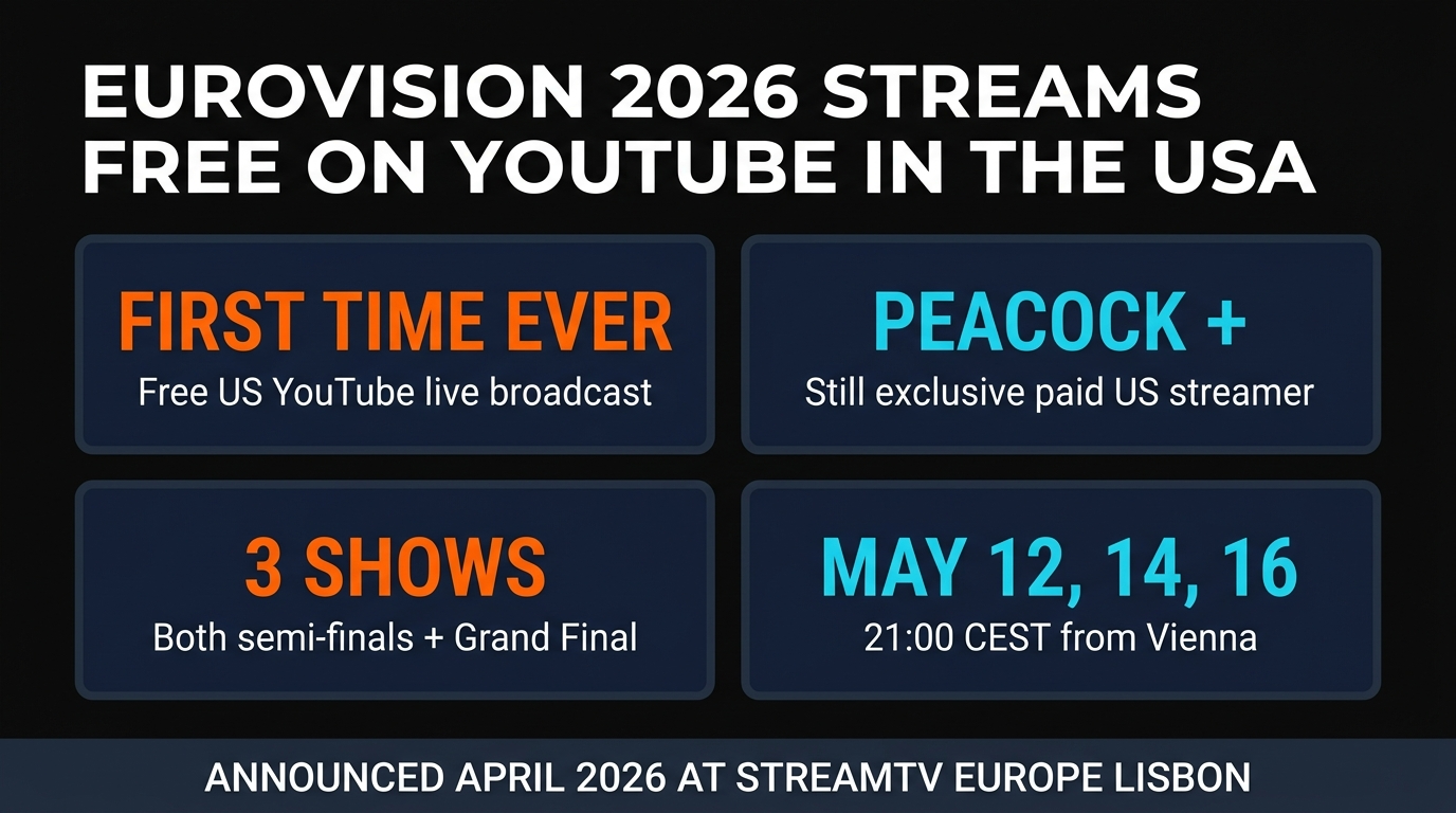 The announcement was made during the StreamTV Europe conference in Lisbon and confirms that the YouTube stream will sit alongside the existing exclusive paid US partner, Peacock. This effectively opens Eurovision to millions of American fans who have previously been locked out by subscription walls.
