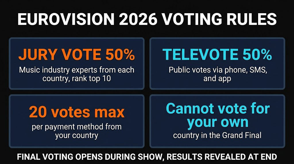 Eurovision is decided by the viewers at home just as much as by industry juries. If you want your voice heard at Eurovision 2026 in Vienna, you need to know the rules, the timing, and exactly how to cast your votes. This complete guide covers everything — from the jury/televote split to phone numbers, the official app, and the key timing windows for each of the three live shows.