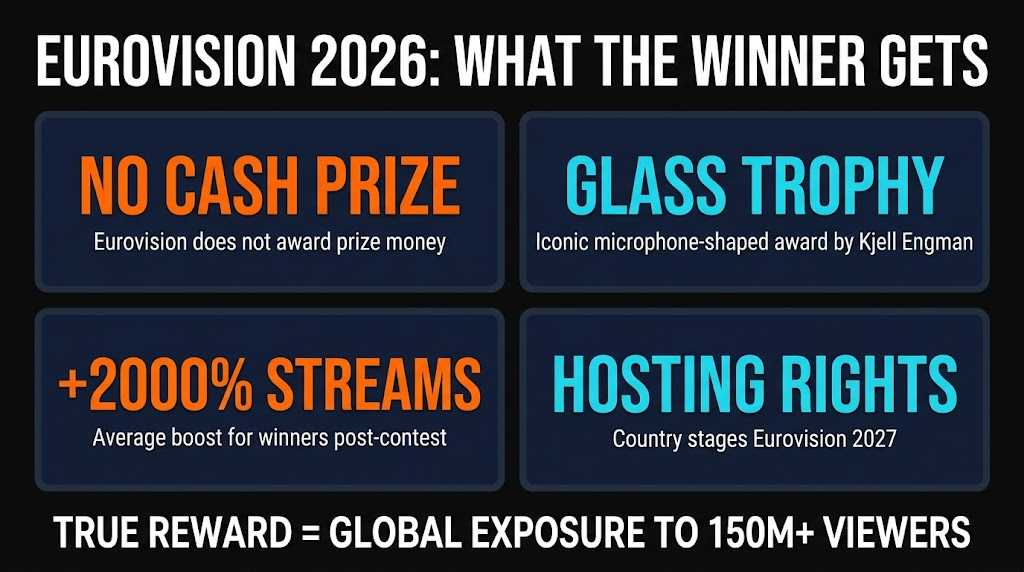 Zero cash does not mean zero reward. Winning Eurovision is one of the most valuable career-defining moments any artist can experience. Here is what winners actually walk away with: